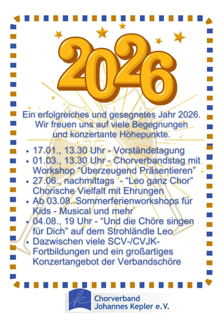 Das Jahr 2025 ging mit vielen chorischen Highlights zu Ende. Mit einer großen Zahl an Weihnachtskonzerten endete das Jahr. Mit Verbandschorleiterin Wiebke Huhs und dem El’Chor Höfingen wurde am 14.12. noch ein „Wohnzimmerweihnachtskonzert“ gestreamt. Herzliche Einladung zum Reinschauen auf YouTube: 🎅 Wohnzimmer-Weihnachtskonzert LIVE 🔴 | Wiebke Huhs & El’Chor | 14. Dezember 18 Uhr