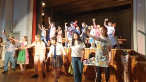 Gleich zum Ferienbeginn vom 31. Juli bis 4. August fand der Musicalworkshop „STEH AUF!“ in der GHR Leonberg statt. Angelehnt an das Musical „Newsies“ tanzten, sangen und spielten 25 begeisterte Kinder im Alter von 9 – 16 Jahren. Newsies ist ein Musical, das auf dem Disney-Film aus dem Jahr 1992 basiert und den Streik New Yorker Zeitungsjungen im Jahr 1899 thematisiert. Auszüge und Lieder aus zwei Akten brachten die Kinder und Jugendlichen mit viel Elan und Schauspielfreude auf die Bühne und begeisterten Familie und Freunde.